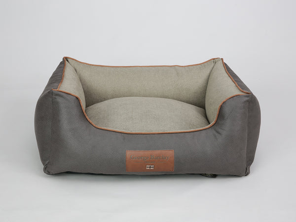 The George Barclay Beckley, walled dog bed, has been produced using the finest quality upholstery fabric. The bed utilises a soft woven fabric for the centre pillow and inner sidewalls, paired with contrasting faux leather for the beds exterior. The bed is finished with faux suede piping, with an embossed faux leather centre patch, which includes an English flag emblem, to complete the beds signature styling.