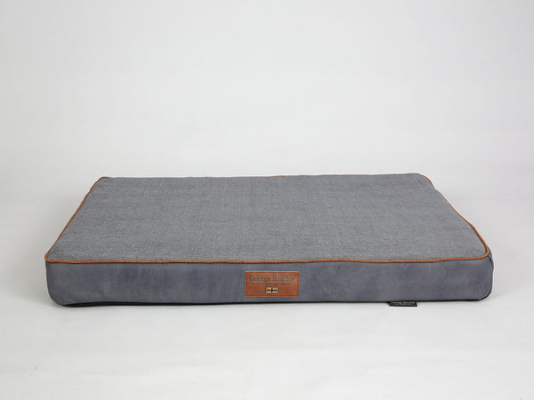 The George Barclay Selbourne dog mattress has been produced using the finest quality upholstery fabric. The bed utilises a soft woven fabric topper, paired with contrasting faux leather sidewall. The mattress is finished with faux suede piping, with an embossed faux leather centre patch, which includes an English flag emblem, to complete the beds signature styling.